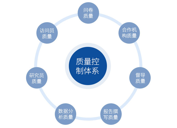 蘭德趨勢秉承客觀、專業、高效的服務理念,在各個環節均有嚴格的質量控制體系,堅持360度全面質量管理,并于2008年自主編寫訪問員手冊及督導執行手冊,截止目前進行了三次修訂,更加規范了項目執行流程,確保了數據的真實有效,360度全面質量控制圖如下: